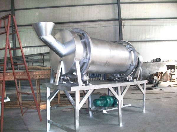 石英砂由皮(pí)帶輸送機或鬥式提升機送到料鬥,然後經料鬥的加料機通過加料管道進入加料端。加料管道的斜度要大於物料的(de)自然傾角,以便物料順利流入幹燥器內。幹燥器圓筒是一個與水(shuǐ)平線略成傾斜的旋轉圓(yuán)筒。物料從較高一(yī)端加入,載熱體由低端進入,與(yǔ)物料成逆流(liú)接觸,也有載熱體和物料一起並流進入筒體的。隨著圓筒的轉動物料受重(chóng)力作用運行到較底(dǐ)的一端。濕物料在筒體內向前移動過程(chéng)中,直接或間接得(dé)到了載熱體(tǐ)的(de)給熱,使(shǐ)濕物料得以幹燥,然後在(zài)出料(liào)端經(jīng)皮帶機或螺旋輸送機送出。在筒體內壁(bì)上裝有抄板,它的作(zuò)用是把物料抄起來又撒下,使物料與氣流的(de)接觸表麵增(zēng)大,以提高幹燥速率並促進物料前進。載熱(rè)體一般分為熱空(kōng)氣、煙道氣等。載熱體經幹燥器以後,一般需要旋風除塵器將氣體內(nèi)所帶物料捕集下來。如需進一步減少尾氣(qì)含塵量,還應經過袋式除塵器或濕法除塵器(qì)後再放排放。